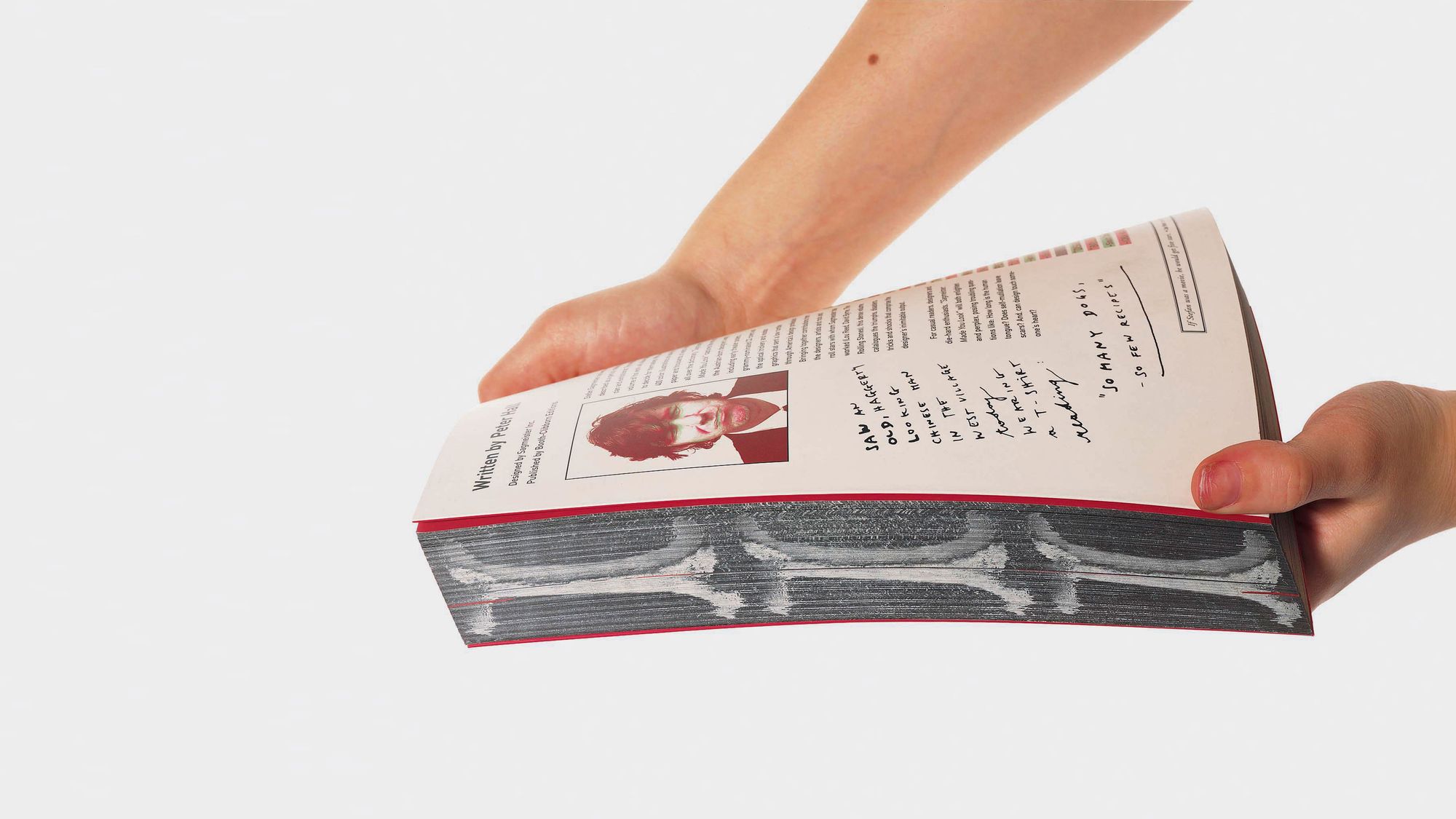 Простой трюк и невероятный эффект — книга Stefan Sagmeister: Made You Look. Она помещена в красный пластиковый чехол, на обложке — изображение овчарки. Снимаете чехол — и собака начинает злобно скалиться. Чуть изогнете книгу, и на блоке проявится текст или изображение обглоданных костей. Эта игра вовлекает — вы можете купить книгу из-за оформления и высказывания, которое оно несет, а не из-за контента. К слову, внутри — дизайнерская монография с описанием почти всех, и даже неудачных, проектов студии Стефана и Джессики.