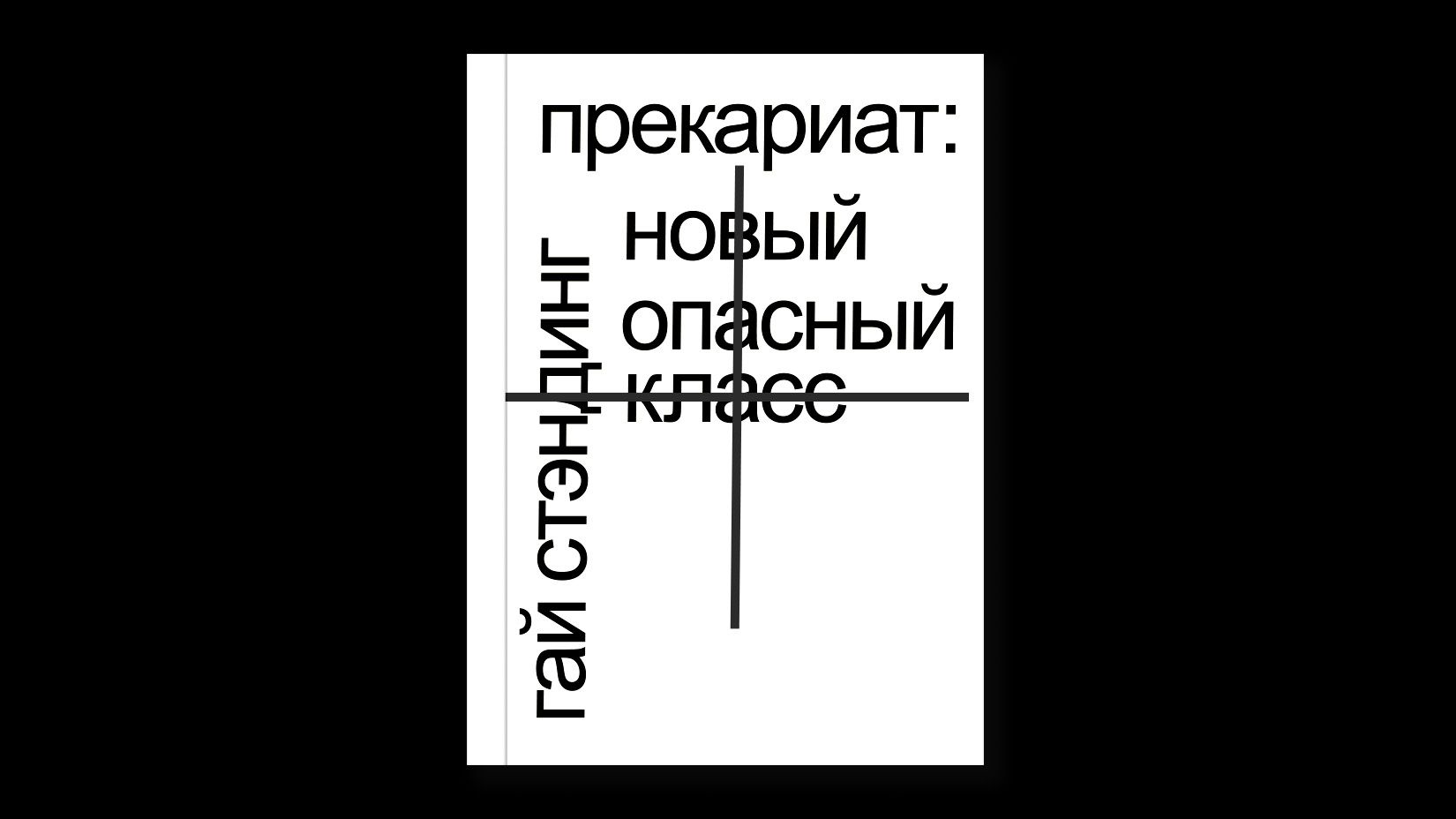 Как пример интеллигентного подхода к контенту мне очень нравятся работы Ани Наумовой и Кирилла Благодатских. Все построено в большей степени на чистой типографике с очень тонкими и точными полями, расстояниями, кеглями. Это тот дизайн, который становится классным не из-за ярких цветов или инновационной идеи, а за счет того, как собраны листы — все на месте. Обложка книги Гая Стэндинга Прекариат — минимум типографики и графических элементов, но вместе они создают странную композицию. Это пример лаконичного дизайна, который цепляет тем, что раздражает.