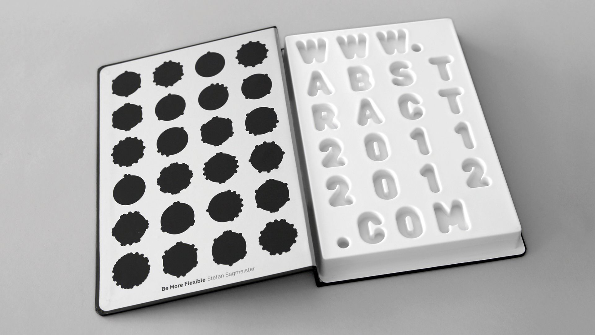 Возможно, не для трипофобов — книга Things I Have Learned In My Life So Far. На картонном чехле книги с портретом Загмайстера есть множество прорезей. Вставляя различные вкладыши, получаем альтернативные варианты обложки, они же — альтернативные портреты Стефана. Внутри — его дневник, жизненные максимы, зафиксированные в объектах дизайна.