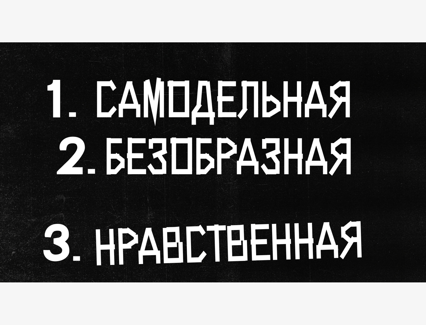 Мне раньше казалось, что русское «коммерческое искусство» перегружено содержанием, что, являясь бесформенной сущностью, оно стремится раскрыться в содержании. Однако отсутствие формы и формальной (может, даже ремесленной) традиции приводит не к углублению в суть, в концептуальную составляющую произведения, а к подражанию формы — в имитацию чужого, где-то увиденного, в имитацию убедительного. При этом «слепое копирование» само по себе считается самодостаточным актом, призванным утолить извечную жажду по форме. Дальше первого, внешнего слоя взгляд творца не погружается, остается нетронутым слой внутренний, содержание. Будучи «бесформенно культурной», Россия является страной, где культура заимствует внешнее, не углубляясь во внутреннее.После многих лет изучения эстетических истоков русской культуры мне бы хотелось выделить несколько неочевидных культурных канонов, которые могут лечь в основу русской культурной традиции. Я тешу себя иллюзией, что традицию можно изобрести или придумать заново. Я постарался найти «смыслы и идеи», которые лежат глубоко внутри нашего понимания этики, эстетики и, как следствие, формообразования и чувства формы. Я сознательно избегаю в своем эссе формальных культурных рудиментов типа: национальные, фольклорные мотивы, русский авангард, техническая эстетика СССР, лихие 1990-е. На мой взгляд, все эти культурные феномены были сформированы благодаря глубинным, еще не проговоренным эстетическим канонам. Я выделяю три основных канона, речь о которых пойдет ниже: бесформенность, самодельность, нравственность.