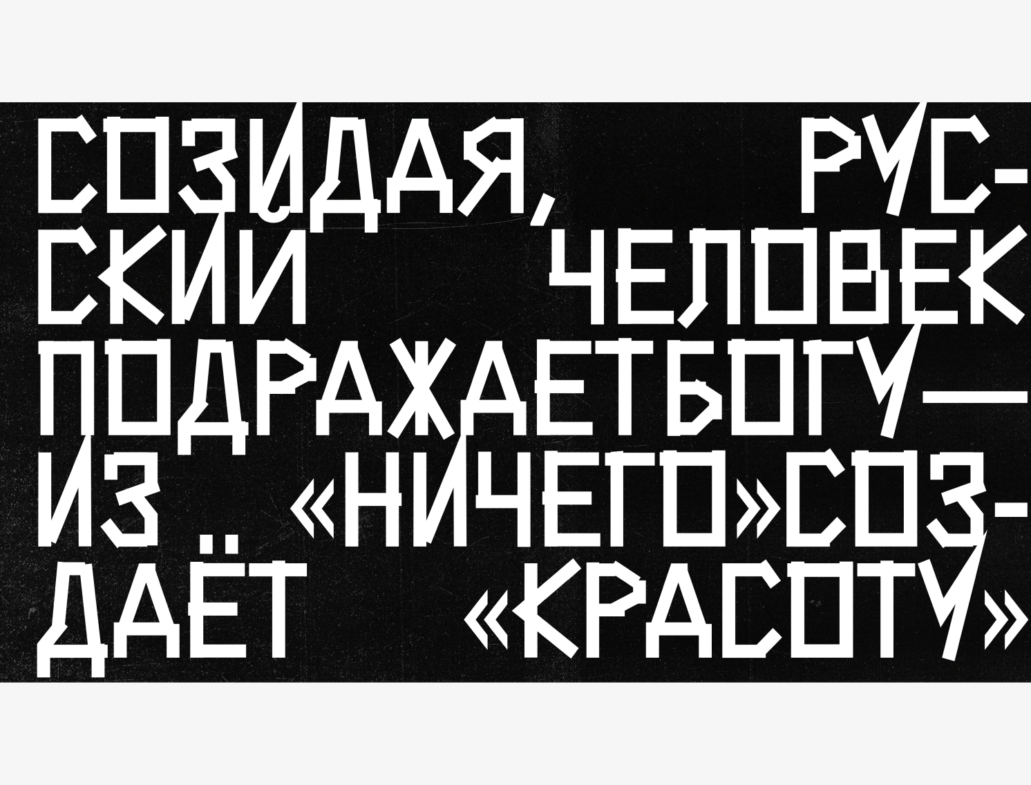 После 24 февраля я вижу, что многие ударились в «русскость». Причем делается и рисуется все это так, чтобы отделить себя/нас, продемонстрировать нашу инаковость, самобытность. Все эти попытки кажутся мне ужасными, все это противоречит самой природе и задаче как коммуникационного дизайна, так и другим видам искусств — объединять. Во многом именно для того, чтобы быть понятым «другим», я и начинал это исследование много лет назад. Я верил, что мы сможем преодолеть страх перед формой и САМОВЫРАЗИТЬСЯ, что мир нас понял и принял. Но страна и культура пошли по другому пути.