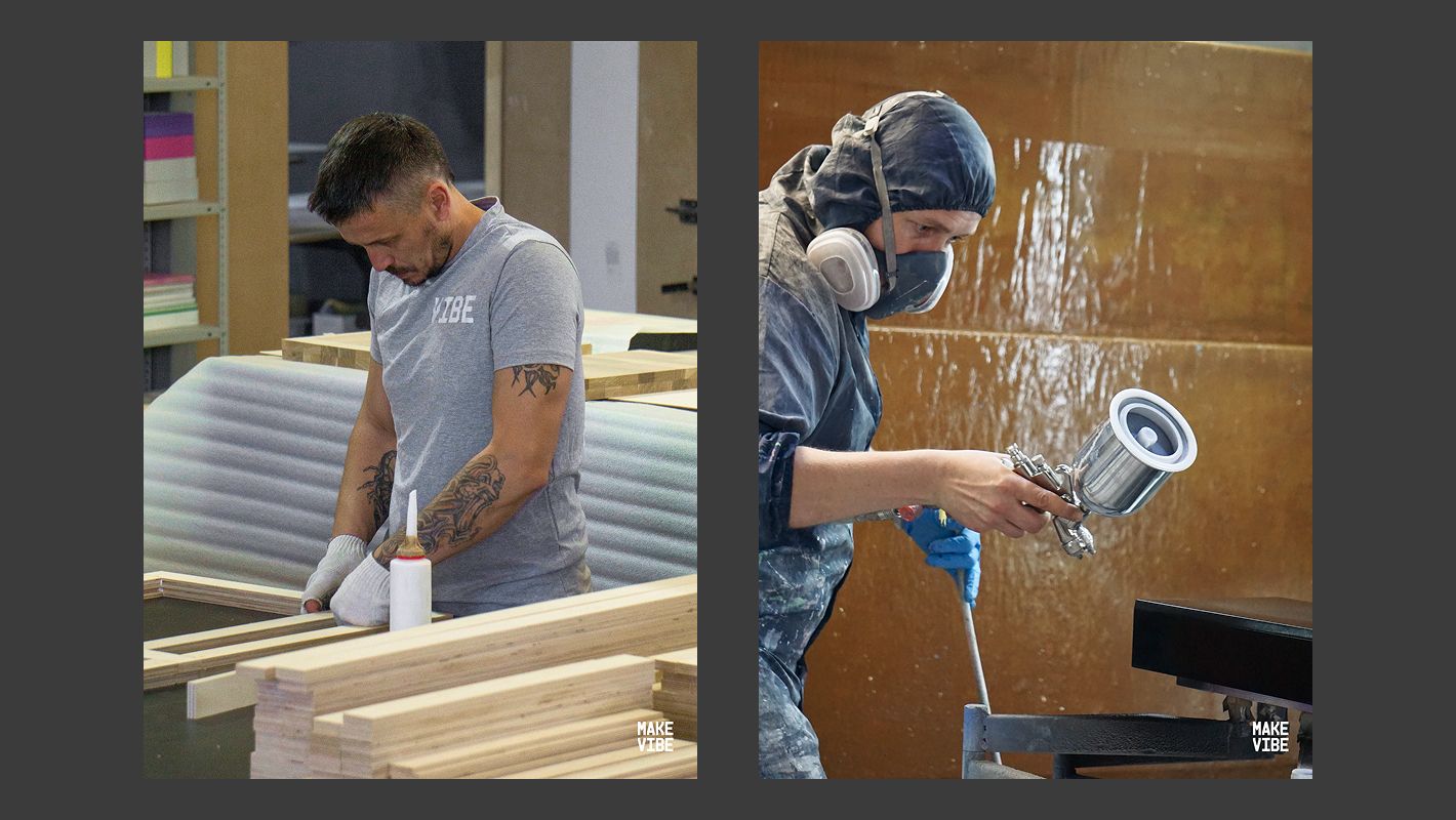 Команда MAKE VIBE работает на стыке инженерной точности и дизайнерской свободы. В их портфолио — проекты для Alrosa Diamonds, Mail.ru, Norebo, SHU, IRNBY, фотоателье UU, а также реализация кафе в доме Наркомфина для музея «Гараж».