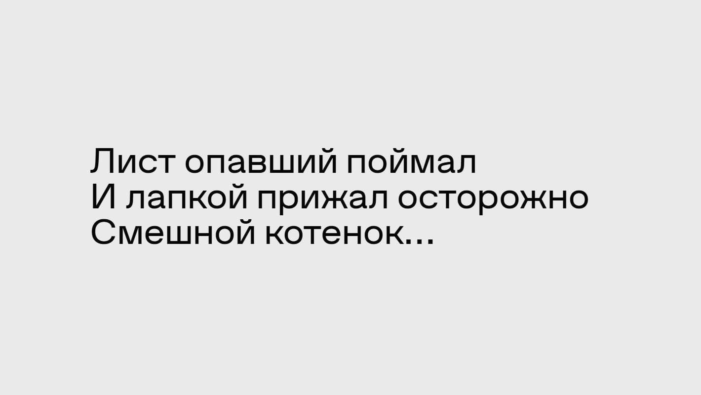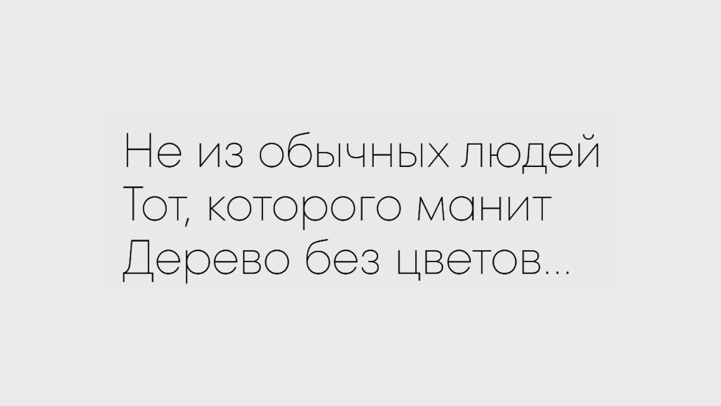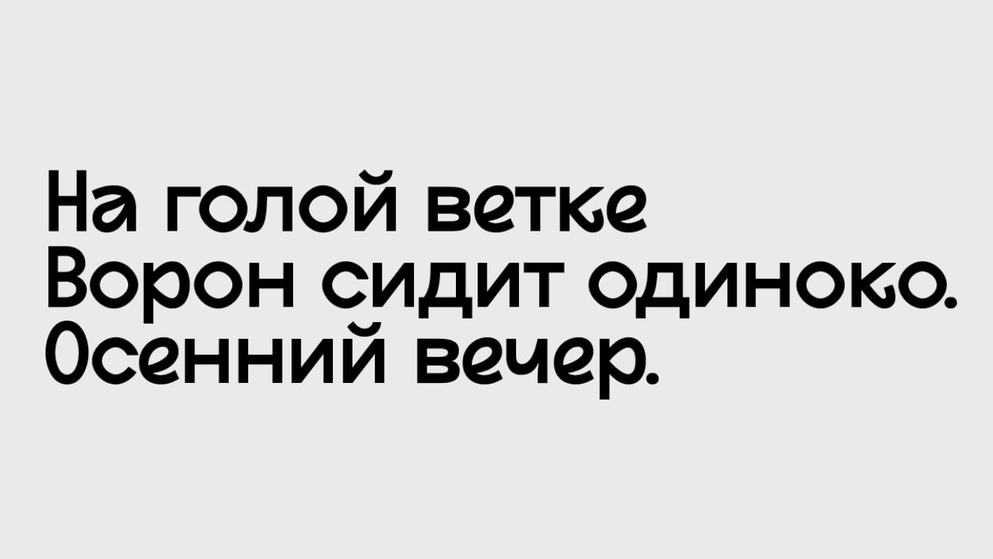 Шрифт хорош как в огромных заголовках, так и в текстах и даже в мелкокегельных подписях.