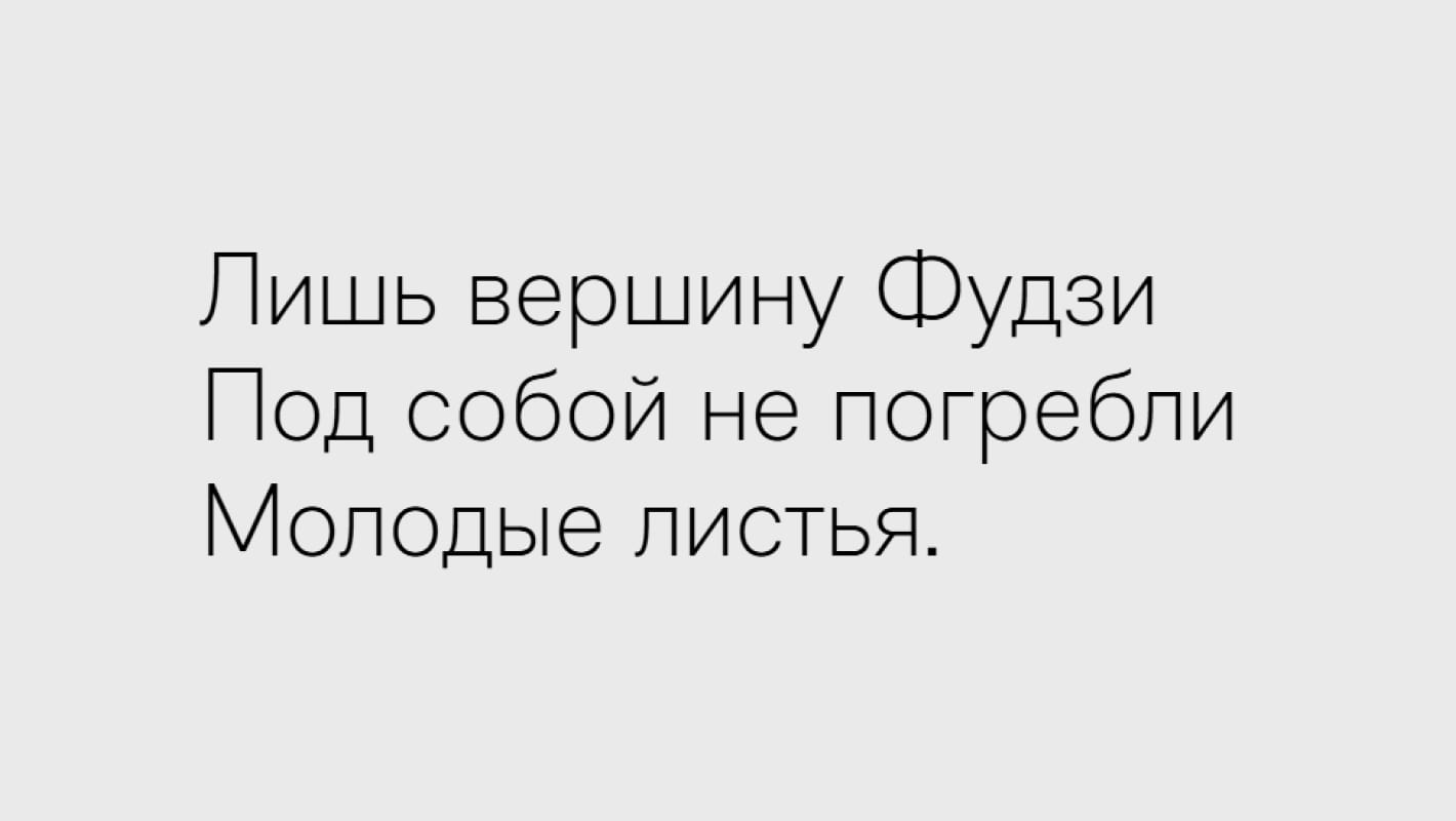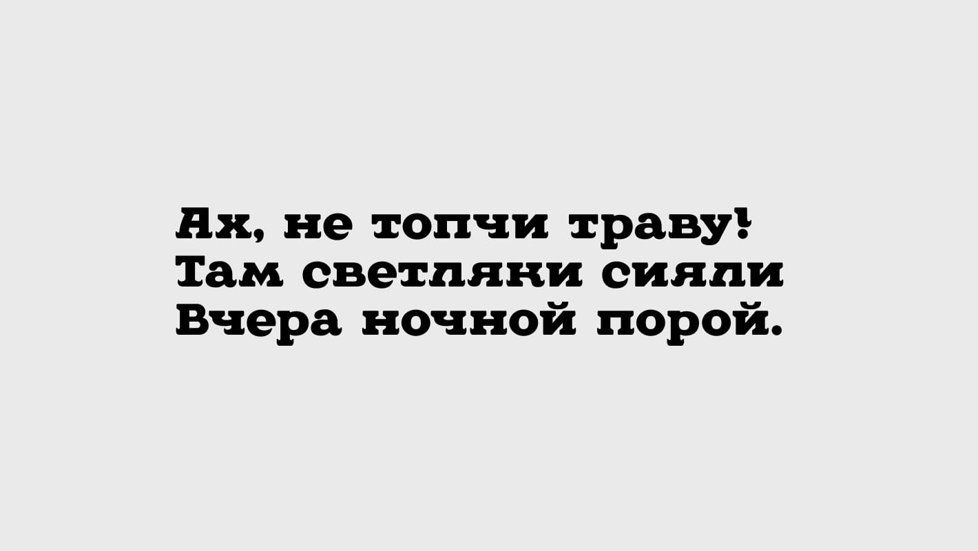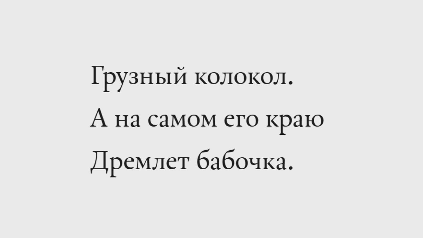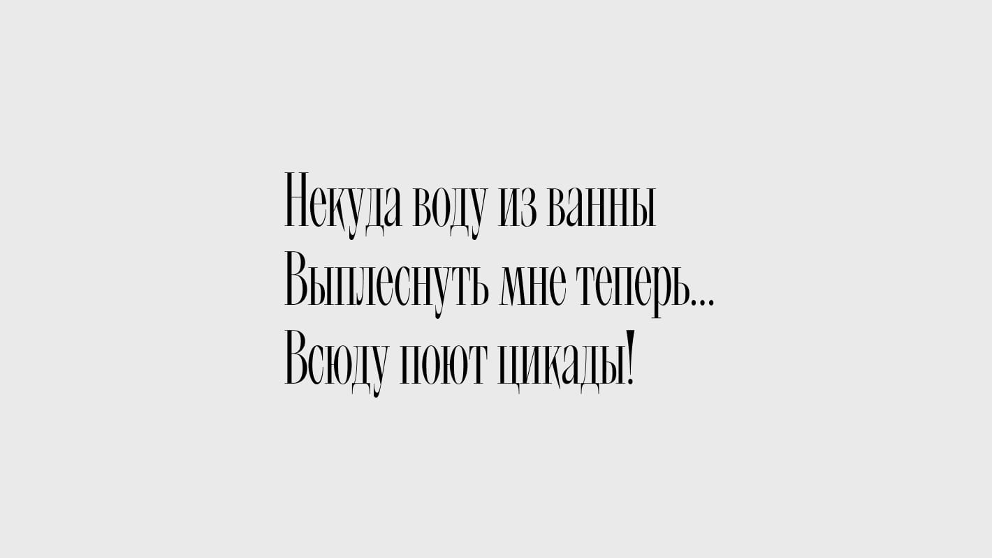 Шрифт хорош как в огромных заголовках, так и в текстах и даже в мелкокегельных подписях.