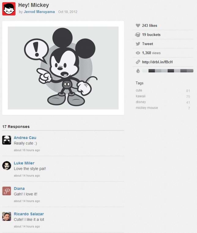 Совет 3: используйте функцию Rebound shot. Это возможность комментировать пост другого дизайнера своей картинкой. Так вы как будто бы благодарите автора за вдохновение. Если пост популярный, то и ваш комментарий многие увидят.