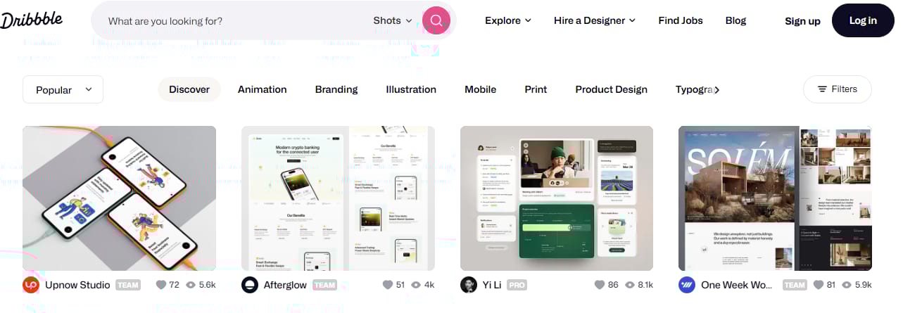 Dribbble — это не просто площадка для портфолио, а целое сообщество профессионалов, где можно не только показать свои работы, но и получить признание в дизайнерском мире.