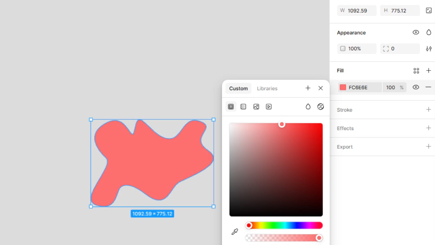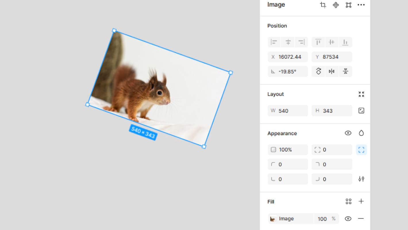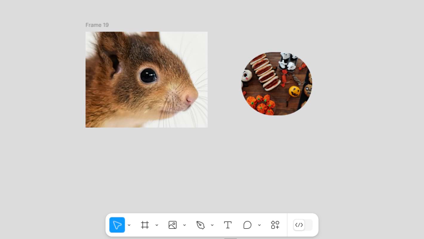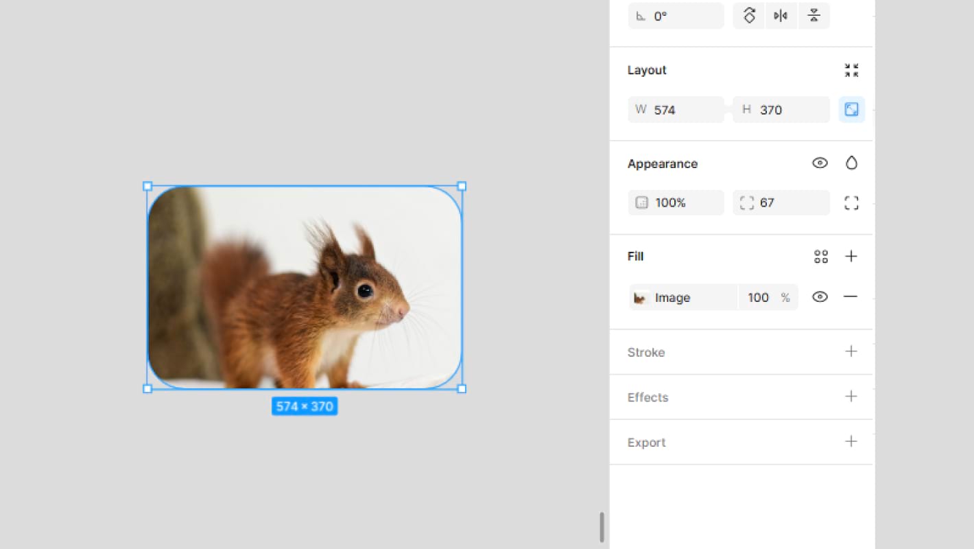 Если при добавлении картинки кликнуть на ранее созданный фрейм, изображение окажется вставленным в него. Если кликнуть на фигуру, фотография станет ее заливкой — это отобразится в правой панели в меню Fill.