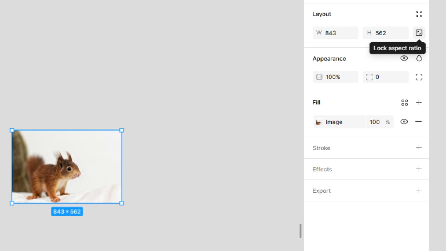 Масштабирование. На панели справа, в блоке Layout, рядом со значениями ширины и высоты есть квадратная иконка — Lock Aspect Ratio. Если эта опция установлена, иконка будет подсвечена голубым. Тогда картинку можно масштабировать, просто вытягивая за один из углов в нужную сторону.