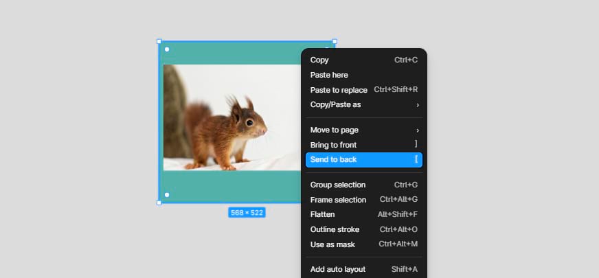 Чтобы сделать маску слоя, сначала надо наложить изображение поверх фигуры. Если фигура получается впереди, ее следует переместить: кликнуть правой кнопкой мыши и выбрать пункт Send to back — эту функцию мы уже упоминали.