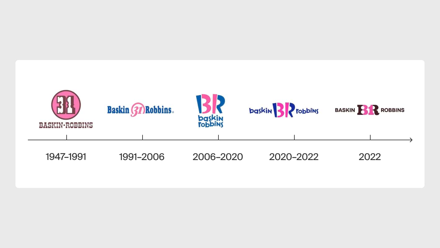 За всю историю Baskin-Robbins брендинг видоизменялся четырежды. Глобальной «перестройкой» стало изменение логотипа в 2006 году. Число 31 спряталось в буквах BR. Название бренда присутствовало в лого и было написано уникальным дизайнерским шрифтом Variex, который создали Зузана Личко и Руди Вандерласт. Розовый не стал основным на логотипе, но был обозначен.