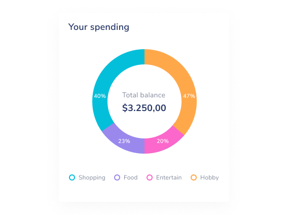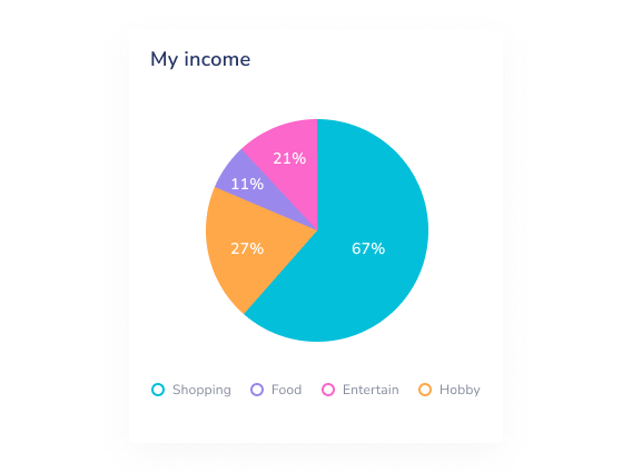 Пайчарт также называют круговой или секторной диаграммой. Это круг, поделенный на несколько сегментов, как пицца, разрезанная на кусочки. С ее помощью удобно показывать доли от целого, например, сколько в стране проживает детей, молодежи, зрелых и пожилых людей. В следующем примере круговая диаграмма демонстрирует, какую долю дохода человек тратит на покупки, еду, развлечения и хобби.