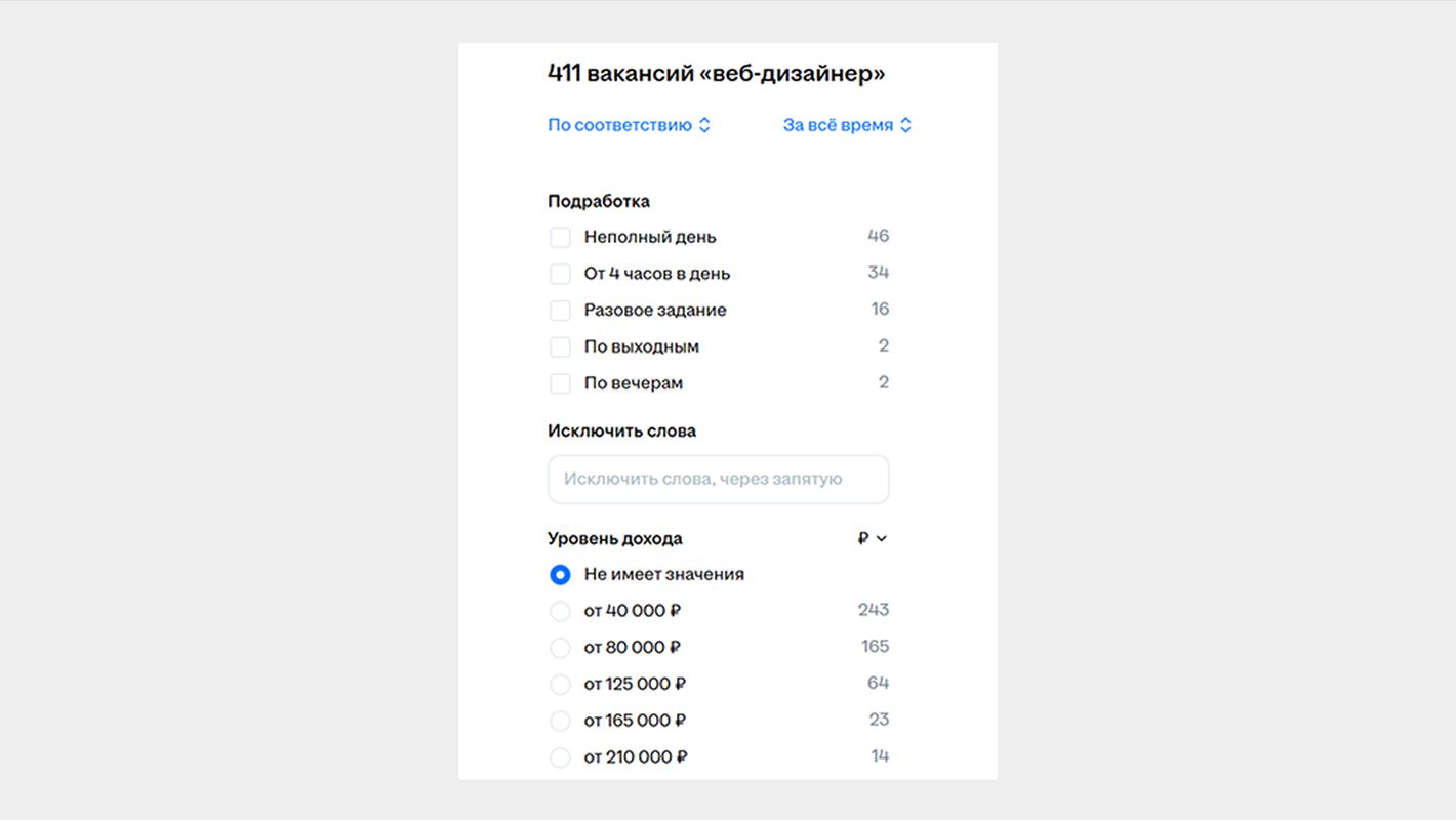 По данным РБК, средняя зарплата веб-дизайнера в Москве за 2024 год составила 92 тысячи рублей. Сейчас на hh.ru доступно 410 вакансий веб-дизайнера, некоторые компании готовы платить до 210 тысяч рублей. Во многих компаниях можно работать удаленно или в гибридном формате.
