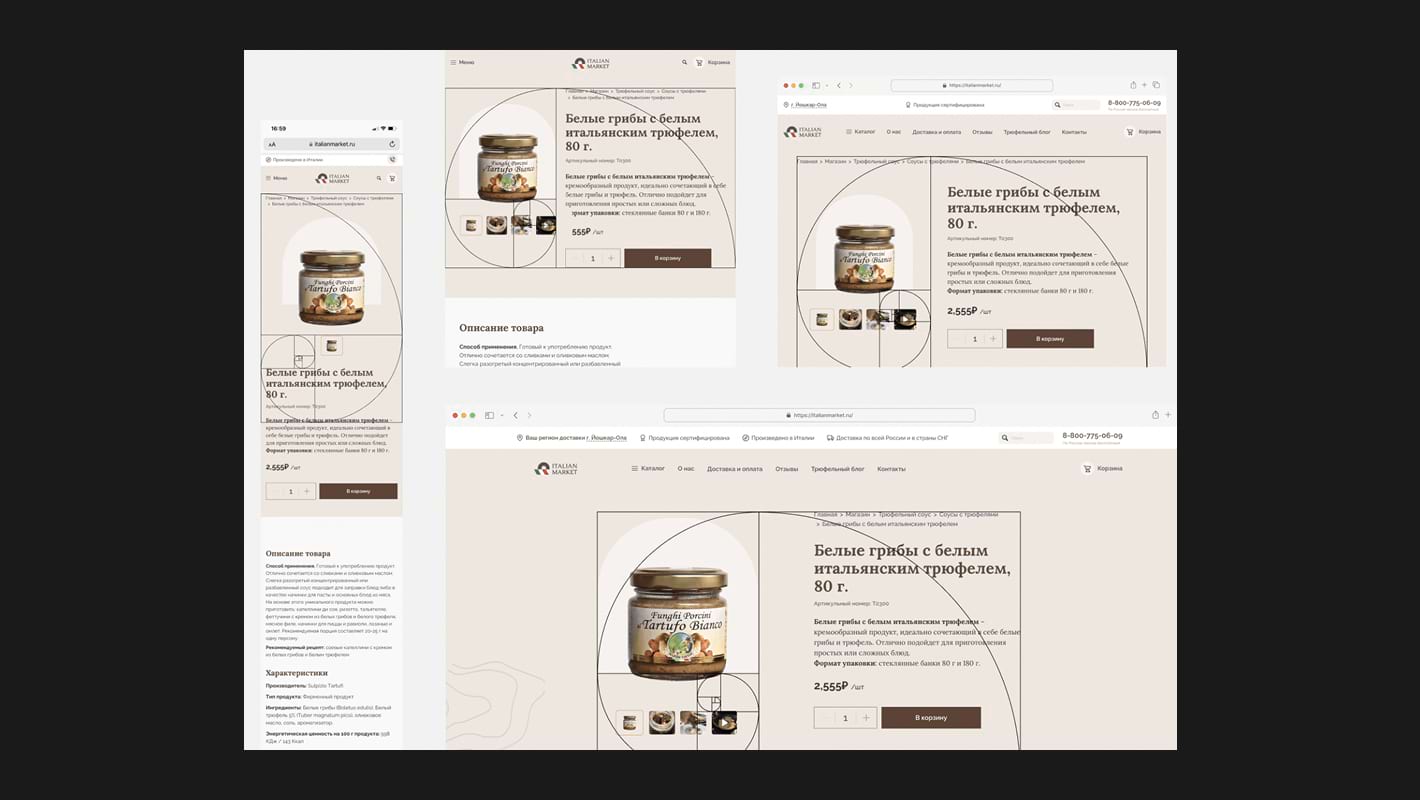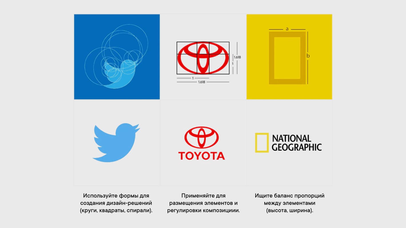 Логотипы, текстовые блоки и картинки часто размещаются на отрезках, соответствующих идеальной пропорции. Это помогает фокусировать внимание на ключевых элементах.