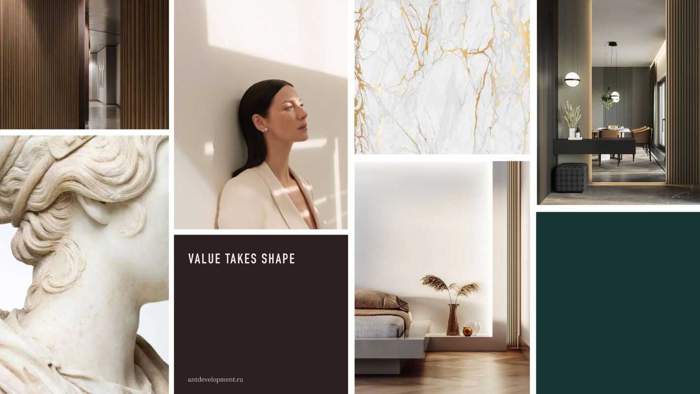 - Изучение задачи на брендинг, погружение в бизнес- и продуктовую стратегию девелопера, знакомство с проектом и запросом заказчика. Во время интервью с клиентом полезно задать следующие вопросы: какой целевой аудитории и что именно бренд должен транслировать? В чем, по мнению девелопера, уникальность проекта? Какие обещания будут уместны, а какие уже лишние? На какие актуальные запросы своих клиентов ориентируется маркетинговая и продуктовая команды застройщика? Часто во время ответов на эти вопросы вскрываются неожиданные инсайты, которые могут повлиять на дальнейшую работу.