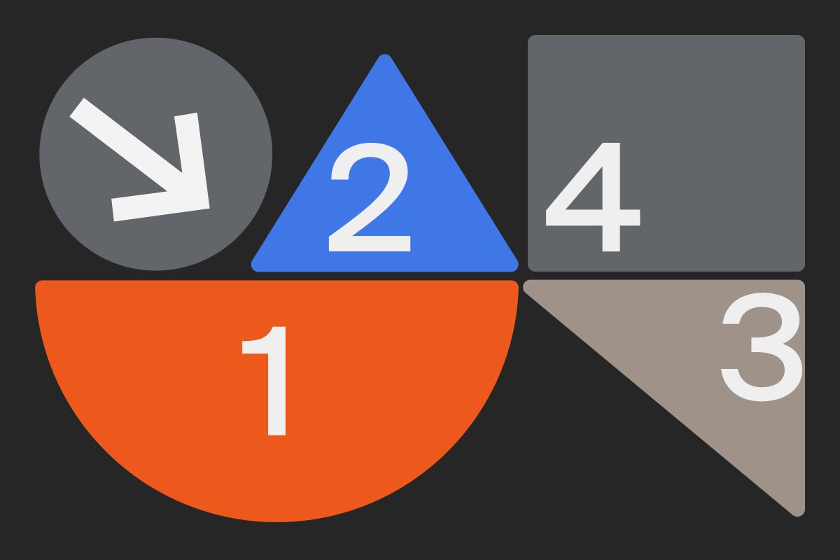 Угловой градиент создает эффект вращения цвета вокруг начальной точки, напоминая движение по спирали против часовой стрелки.