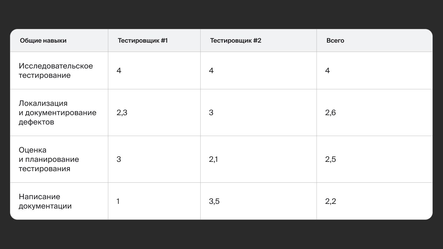 Но отказываться от системности не стоит. Мы первично сформировали список существующих навыков, получили обратную связь от сотрудников и составили полную траекторию развития новых специалистов. В ее основу легла матрица компетенций — подбор проектных задач, по которым проверяется ход и успешность обучения.