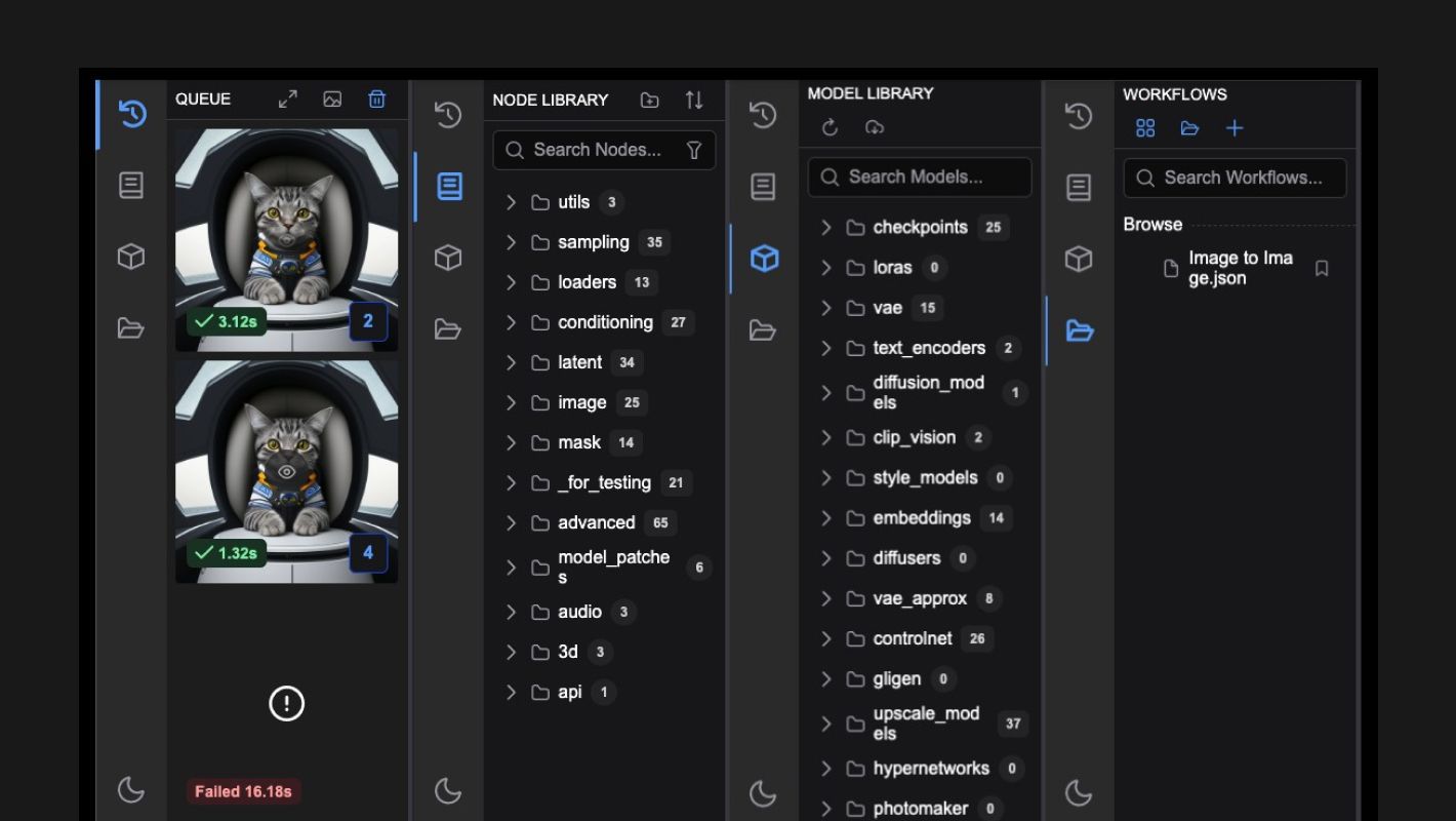 Comfy UI — хоть и не новый, но регулярно обновляется, поэтому подойдет. Этот профессиональный инструмент нейродизайнера может выручить там, где нужны четкое следование идее и консистентные образы.