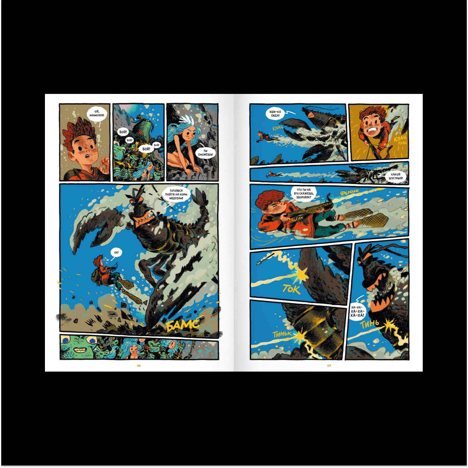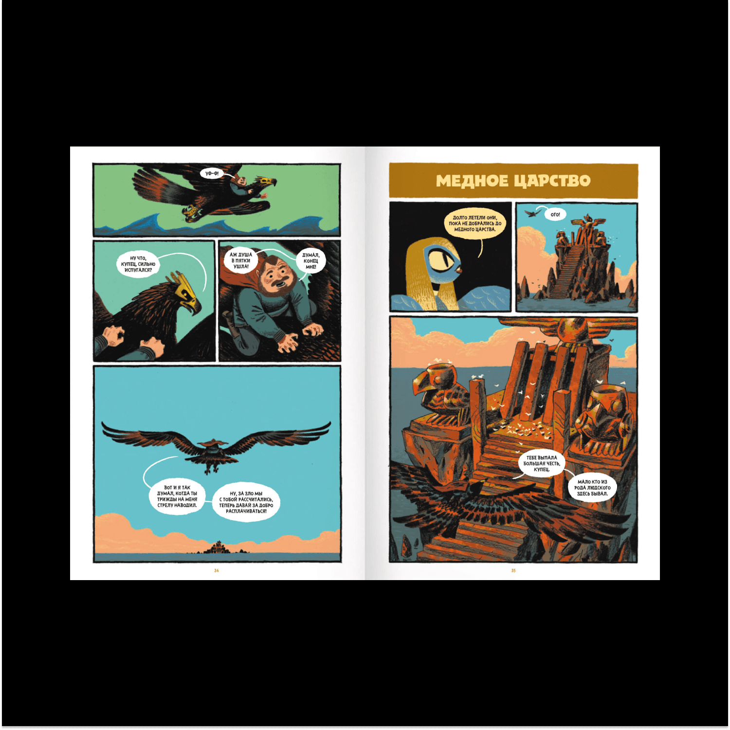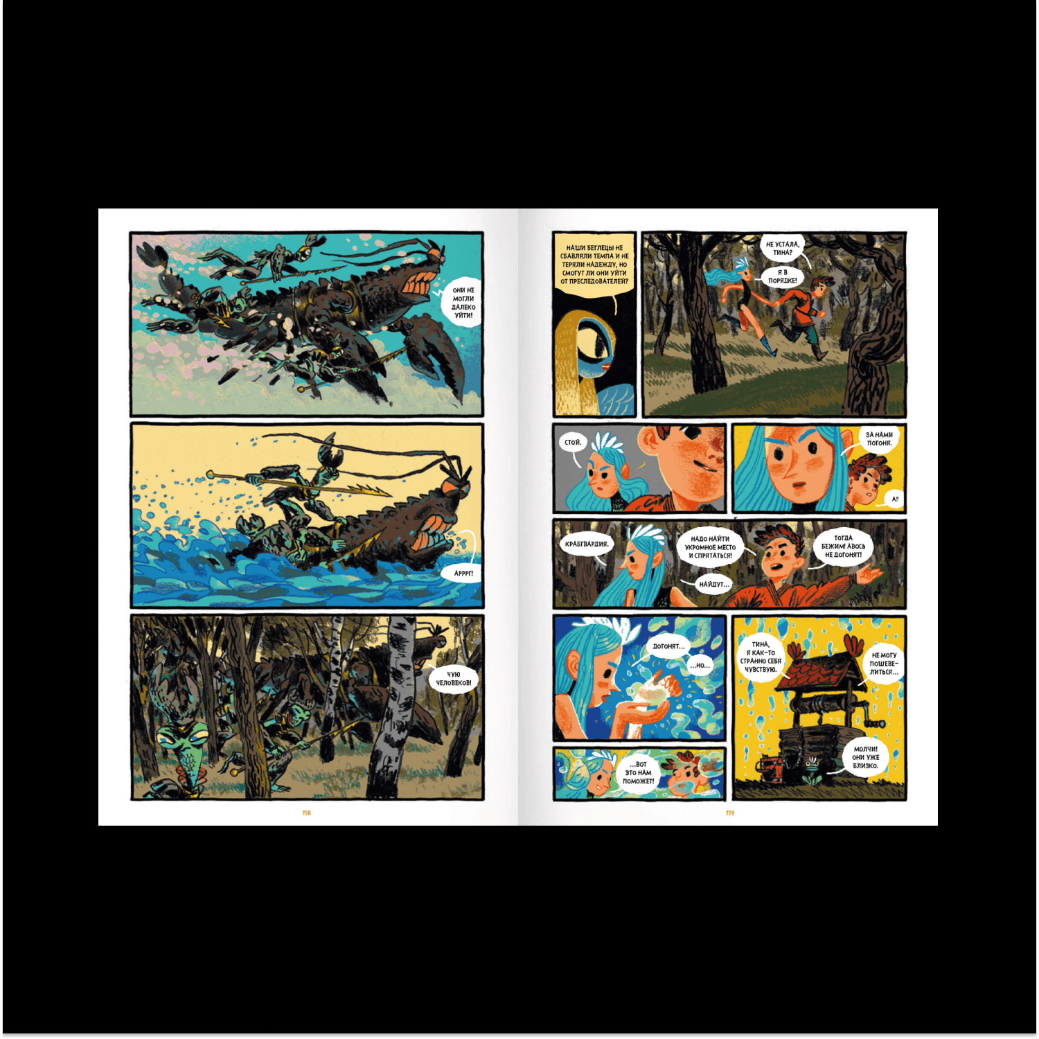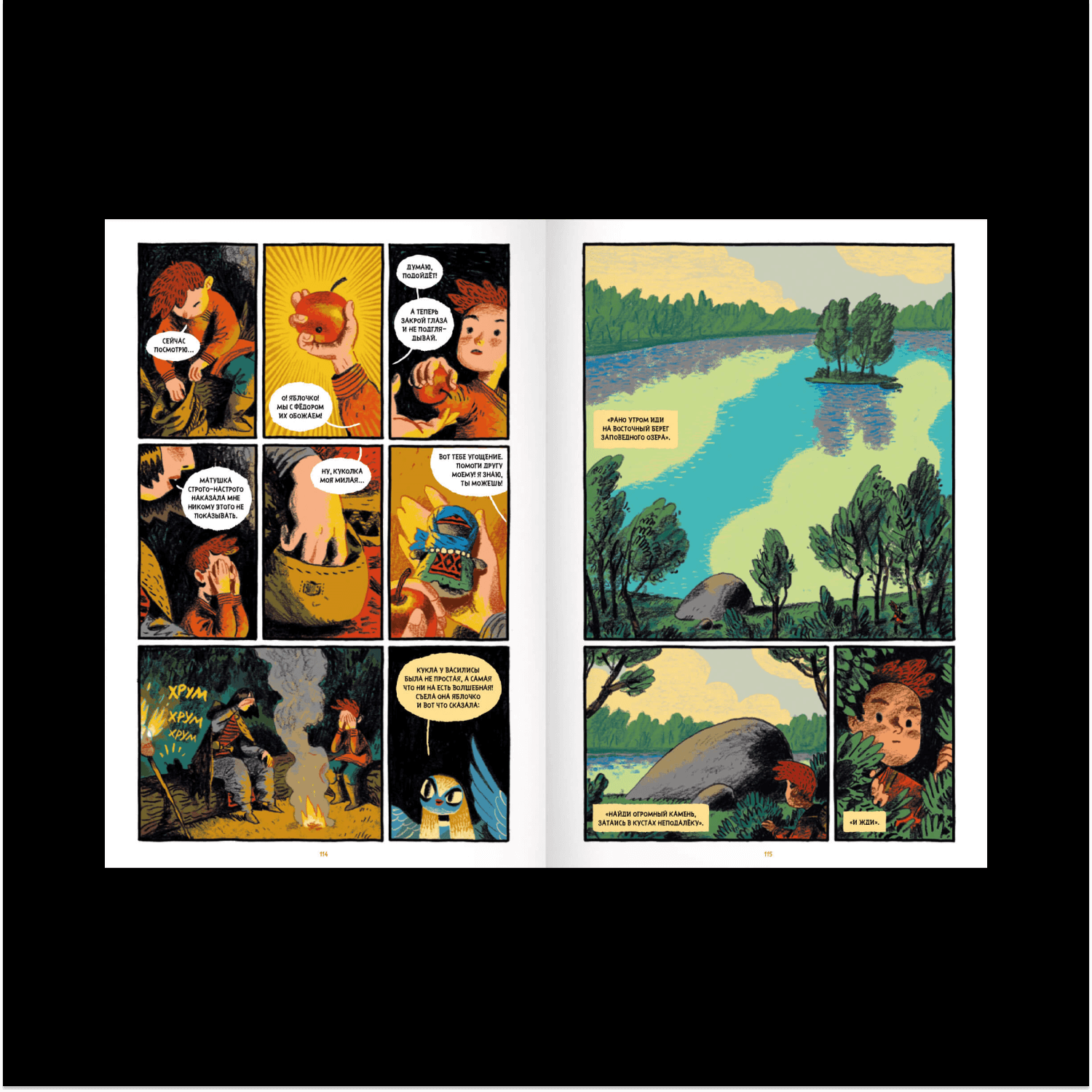 После Англии среагировали испанцы и французы. И в 2020-м, наконец, «Бумкнига» решилась издать у нас — но я хочу отметить, что они купили права до того, как книжка отправилась по всем фестивалям и номинациям. Так что все честно, на любви к искусству! Пока они готовили издание, прикатили три французские номинации и номинация на Айснера. Это хорошее подспорье — стало чуть понятнее, как меня продавать в России. Я не писатель, хотя официально теперь таковым считаюсь. Скорее я бы назвал себя сценаристом. Когда я решился сделать комикс, то сначала стал пробовать работать с чужими сценариями, но вскоре понял, что хочу все делать сам, отвечать за все аспекты своей работы и принимать все решения. Тогда мне пришло озарение — взять русские народные сказки. На них не распространяется авторское право — бери, переделывай как хочешь. И, главное, это истории, проверенные тысячелетиями, в них есть некое зерно, которое пережило много поколений и по-прежнему остается интересным. Если на это зерно посмотреть взглядом человека, который читает современную литературу и смотрит сериалы Netflix, — оказывается, что там есть большой простор для творческого и визуального самовыражения.