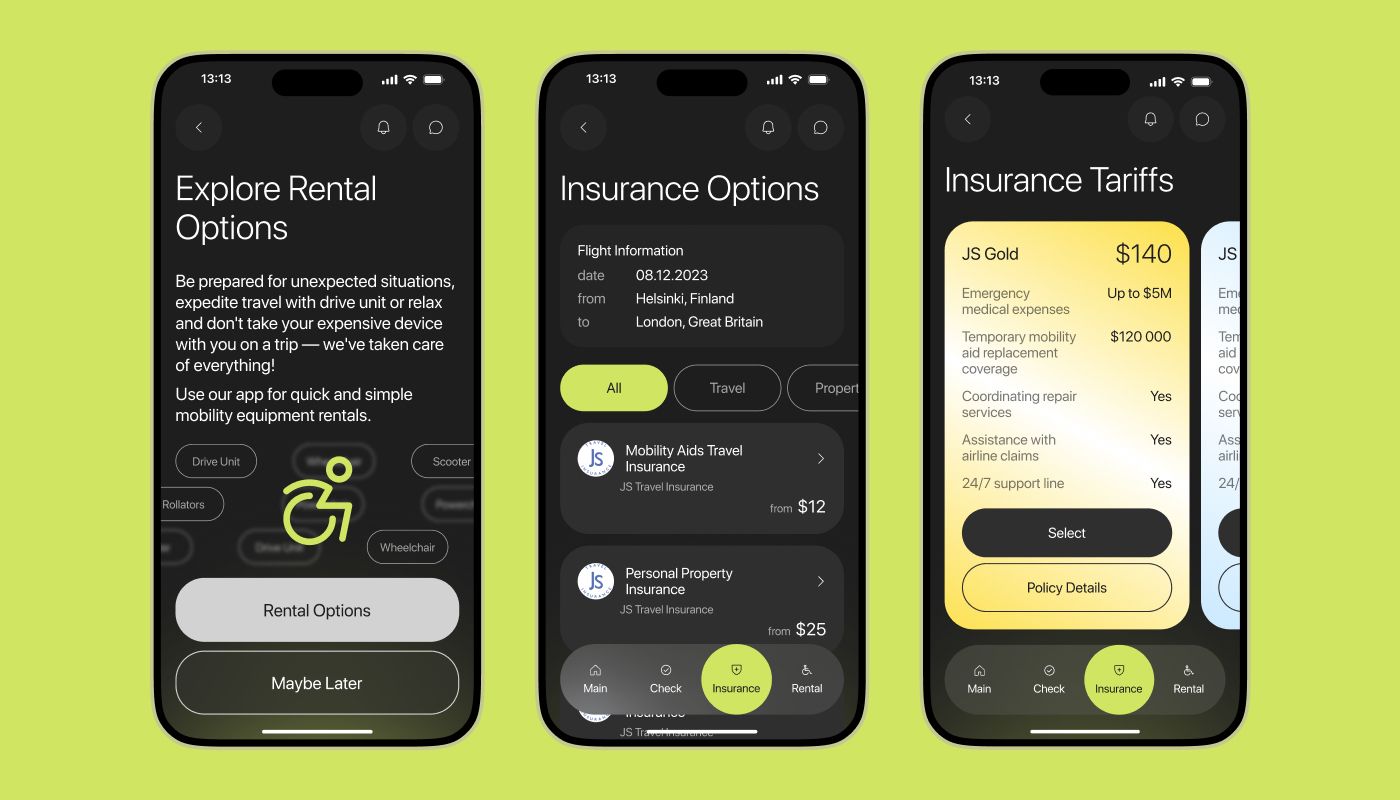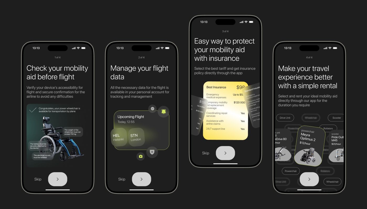 Мне понравилось, что нашими стейкхолдерами почти всегда были настоящие заказчики, а это невероятно полезный опыт в копилочку. Globe4all организуют путешествия для людей с инвалидностью и пришли с идеей сделать приложение, облегчающее авиаперелеты. Тема доступности всегда была для меня важной, так что я была очень рада поработать вместе с ними. До этого я никогда не задумывалась о сложностях в авиаперелетах с ТСР, поэтому предметная область для меня была незнакома.