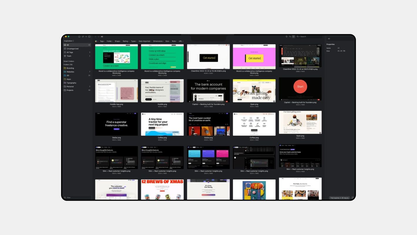 Чтобы упростить поиск референсов, можно скачать программу для хранения референсов Eagle и ежедневно пополнять свою библиотеку красивыми картинками.
