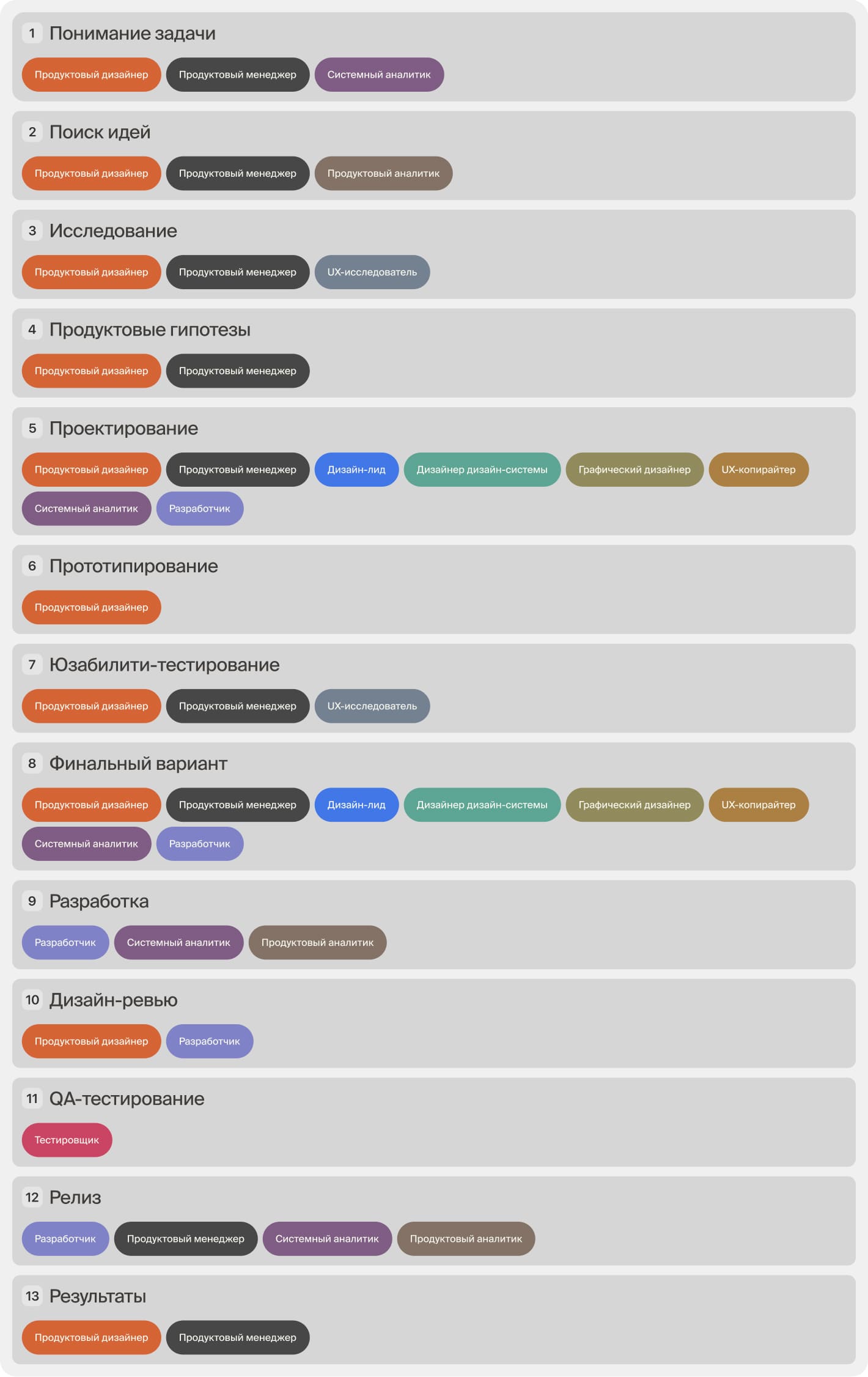 В статье я описываю идеальный дизайн-процесс, но в работе все бывает иначе: этапы могут меняться местами, и это нормально. Например, вопреки всем рекомендациям, дизайнер может накидать прототип на этапе проработки идей или устроить коридорное тестирование до полноценного исследования. Дизайн-процесс живет ради пользователя и бизнеса, поэтому некоторые этапы можно упростить или вовсе пропустить.