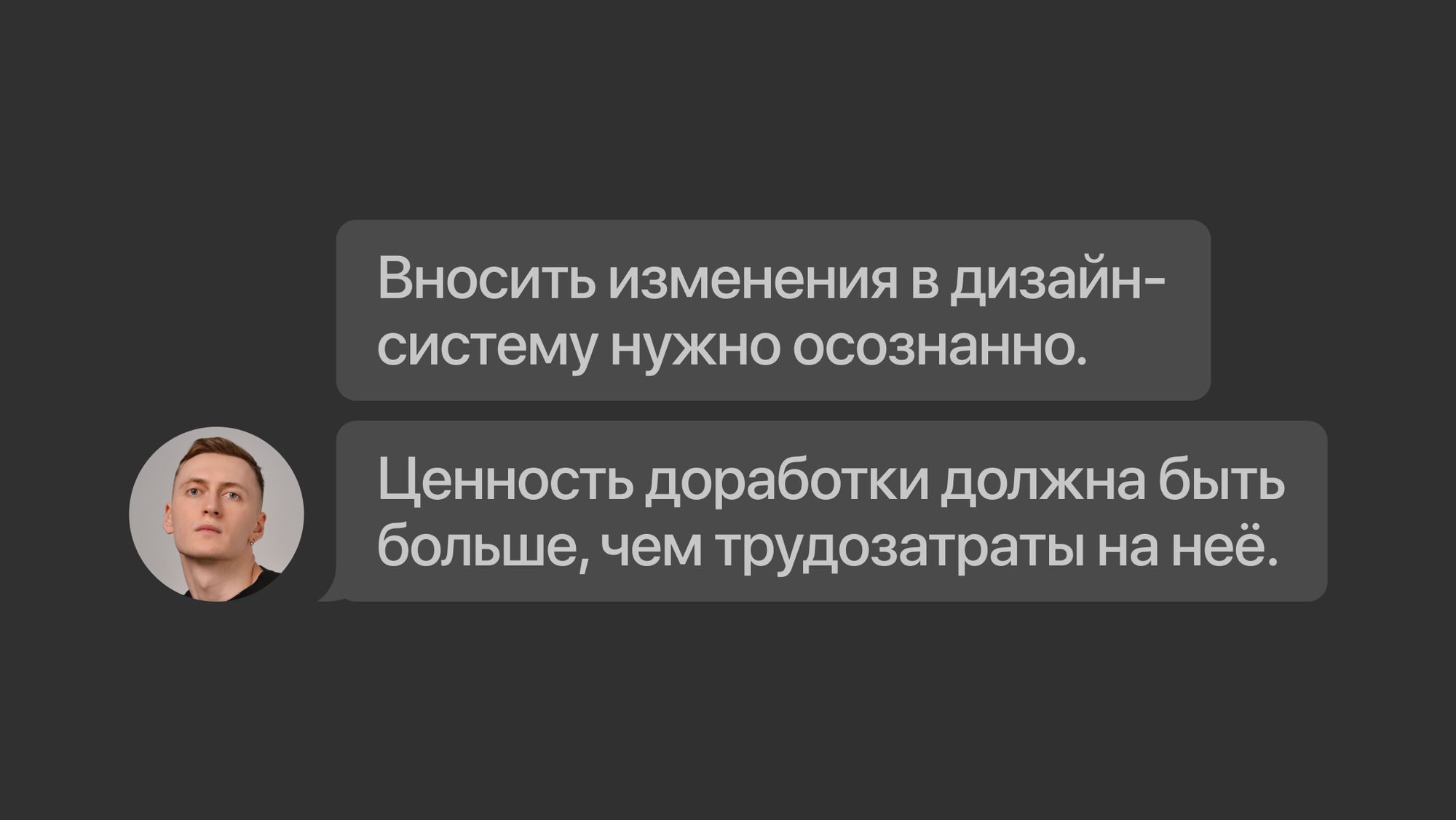 На этом этапе проверяется целостность компонентов в макетах. Дизайн-система не держит вас в жестких рамках, но если вы использовали что-то, чего в дизайн-системе нет, то ваше решение должно быть обосновано.