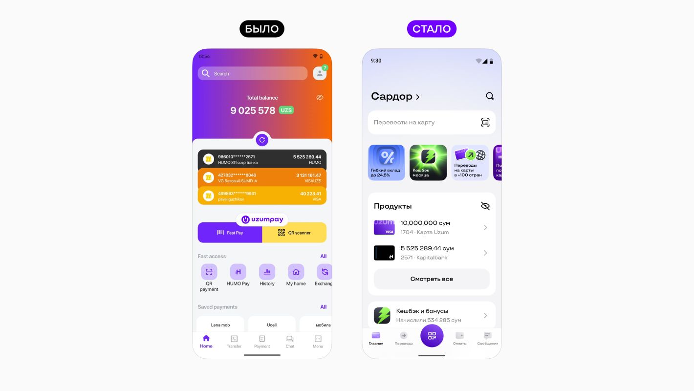 - Явная кнопка скрытия баланса была самой частотной функцией на экране, потому что на рынке Узбекистана нет Apple и Google Pay, а большая часть оплат происходит с помощью сканирования QR-кода через приложение банка. Люди часто открывают приложение в публичных местах и не хотят, чтобы кто-то случайно увидел баланс.